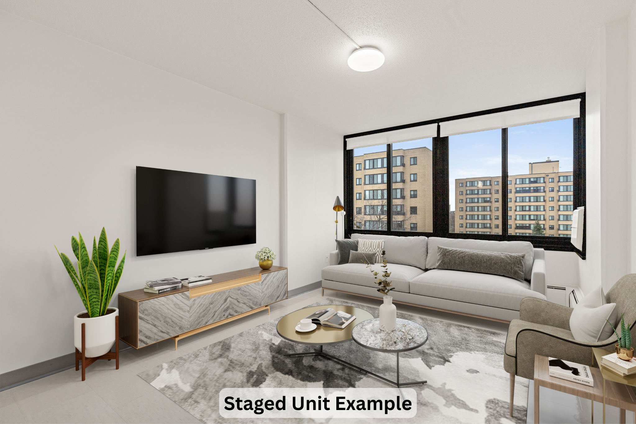 Resident community rooms are conveniently located on the first floor of each building. The 620 Cedar, 1627 and 1611 Sixth first-floor community rooms offer TVs, seatings, and kitchenettes making it a great place to chat with neighbors or watch a movie. Residents use this space for resident council meetings, meetings with support staff, community activities, and it can be reserved by residents for personal parties. Property management offices are located on the first floor of 1611 S 6th St. and 630 Cedar. Laundry machines are located on the first floor at 630 Cedar, on the third, fifth and seventh floors at 620 Cedar, 1627 and 1611 Sixth.