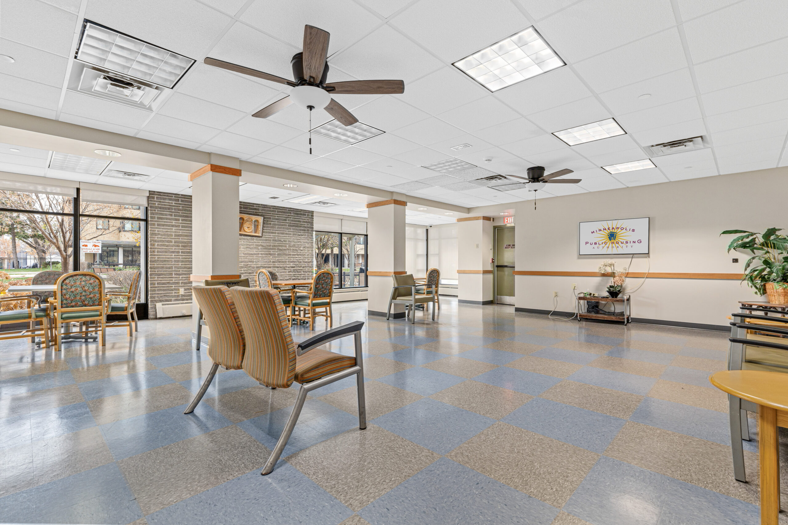 Resident community rooms are conveniently located on the first floor of each building. The 620 Cedar, 1627 and 1611 Sixth first-floor community rooms offer TVs, seatings, and kitchenettes making it a great place to chat with neighbors or watch a movie. Residents use this space for resident council meetings, meetings with support staff, community activities, and it can be reserved by residents for personal parties. Property management offices are located on the first floor of 1611 S 6th St. and 630 Cedar. Laundry machines are located on the first floor at 630 Cedar, on the third, fifth and seventh floors at 620 Cedar, 1627 and 1611 Sixth.