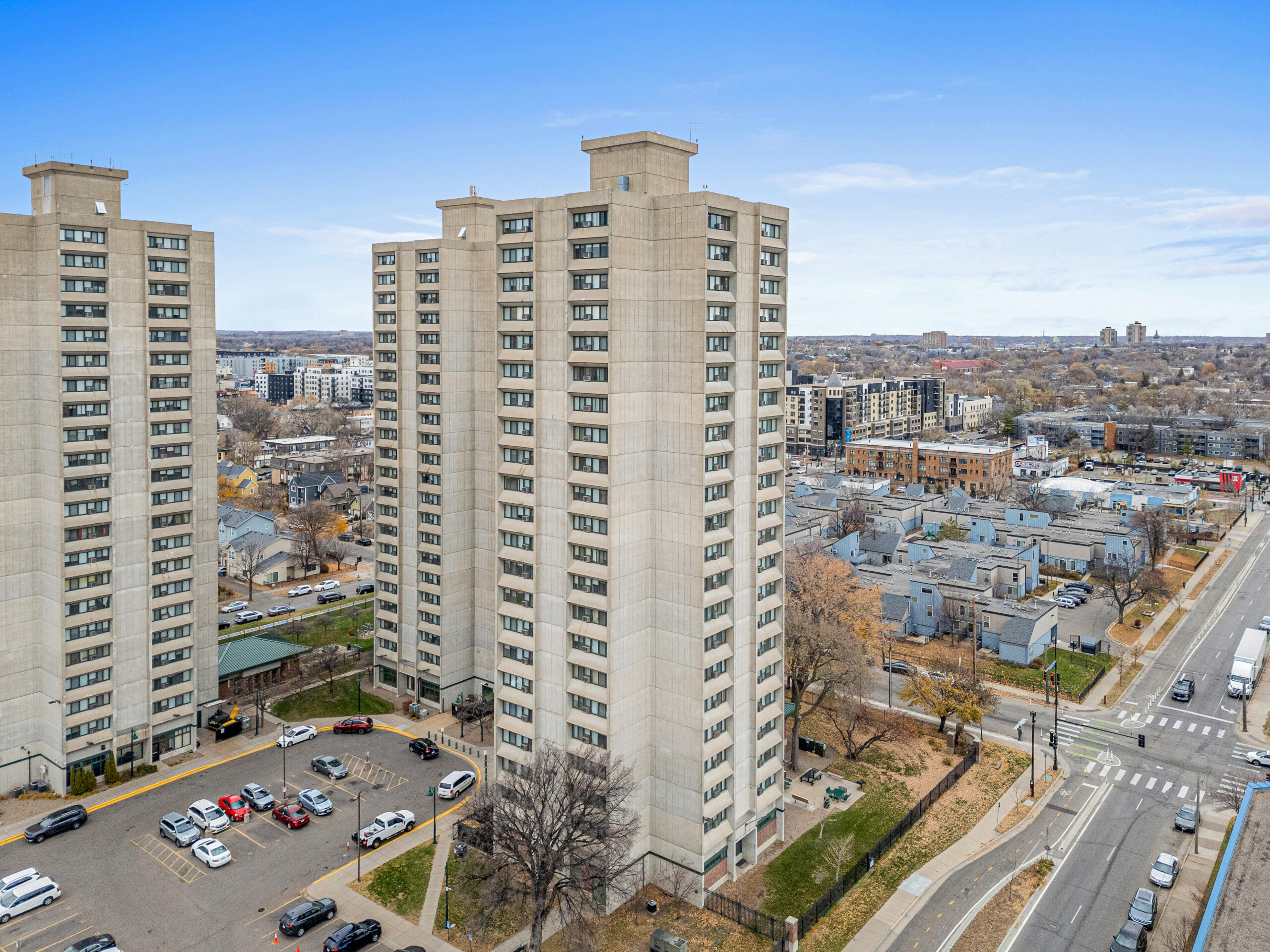 Built in 1971, the Horn Towers are made up of 491 one-bedroom units across three buildings on the same city block. These three 22-story high-rise buildings are in the Lyndale neighborhood.