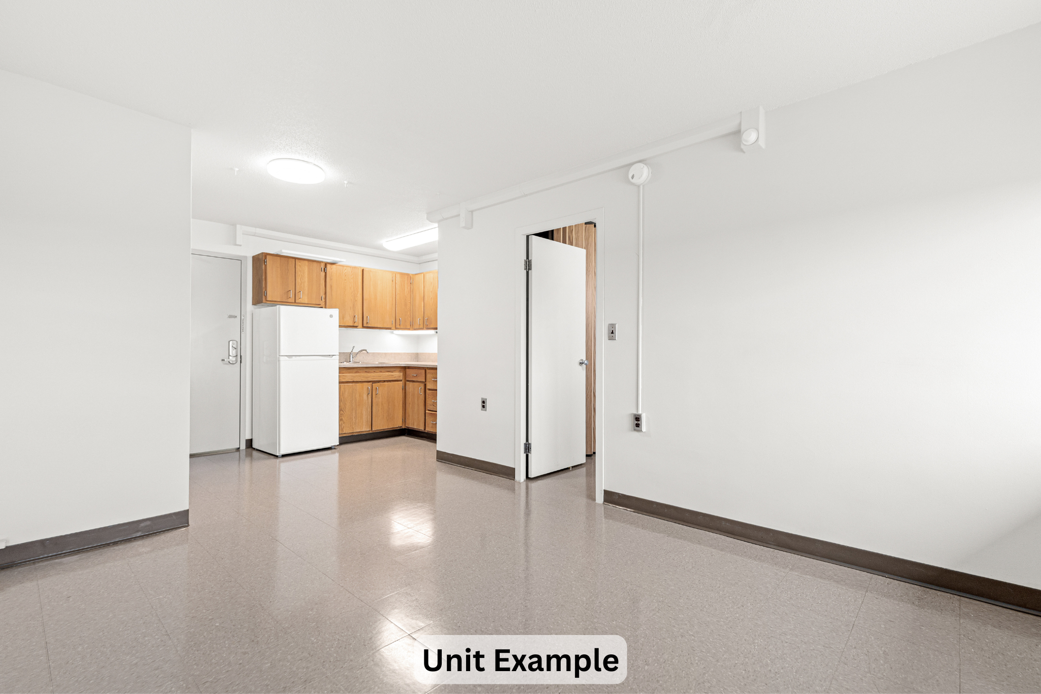 Laundry machines, property management offices, and resident community spaces are all conveniently located on the first floor of the building. The first-floor community room offers a TV and seating, making it a great place to chat with neighbors or watch a movie. Residents use this space for meetings with support staff and community activities, and it can be reserved by residents for personal parties.