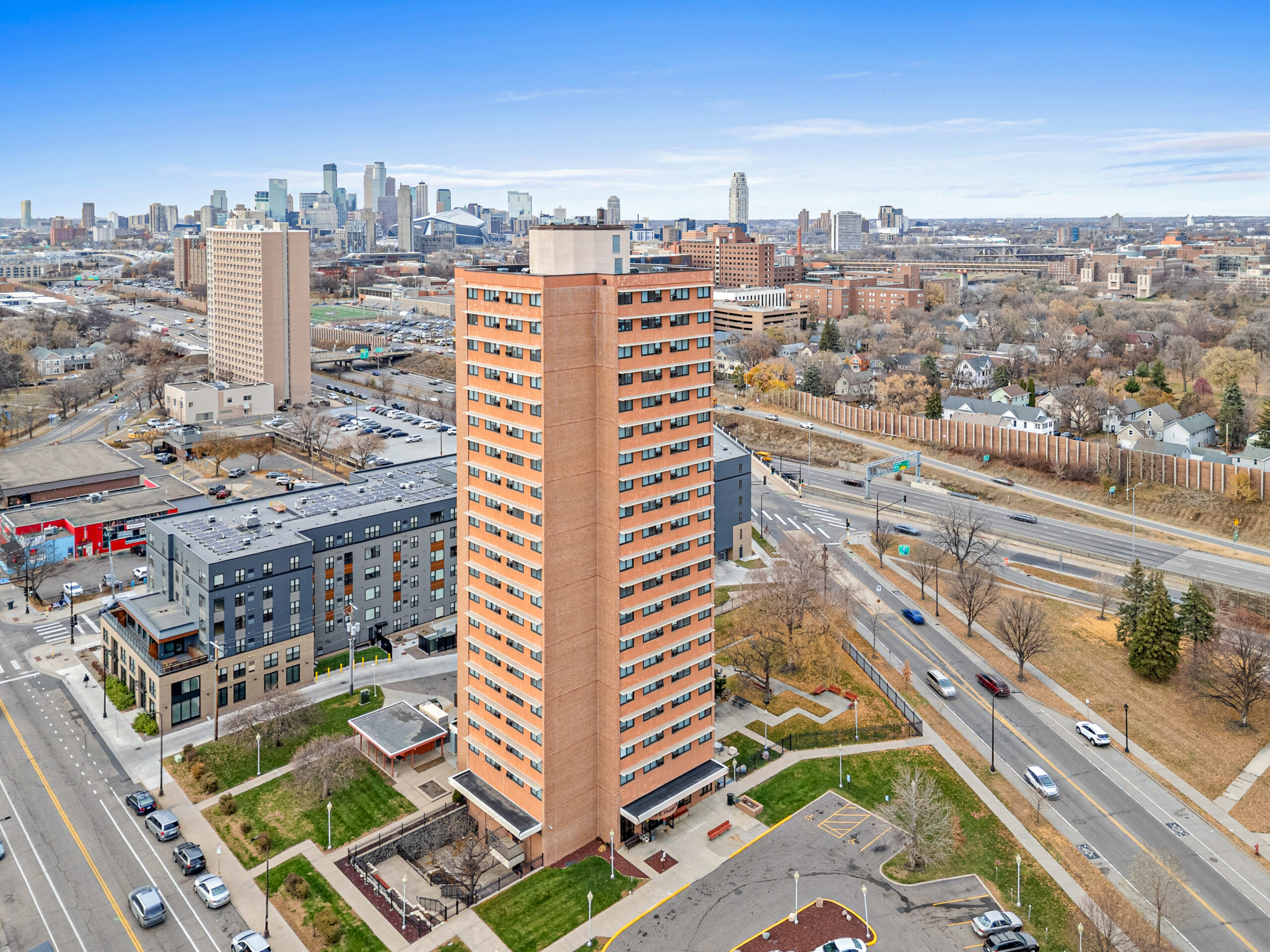 Built in 1967, The Riverside is made up of 151 units (one-bedrooms). This 21-story high-rise building is in the Seward neighborhood.